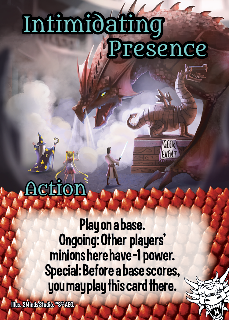 - Your entire goal as the Dragons is to make the most important bases for your opponents as difficult as possible to play on. Reduce the power of their minions, force them to discard cards, even reduce the VP they get from scoring the base.