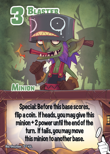 The Goblins have an entirely unique mechanic in Smash Up - coin flips. If you don't like RNG, this is not the faction for you. Lots of the Goblins' cards allow them to flip a coin, and do something different depending on the outcome. Heads will typically provide power counters, while tails will provide utility. In the case of cards like 'Magic Helmet', an unfavourable coin flip can end disastrously for the Goblins. Magic Helmet gives one of their minions +4 power, but they must flip a coin before its base scores. If it's tails, then that minion gets destroyed. The Goblins are a real boom or bust faction, their plans can go perfectly if the coins are compliant, or can crash and burn if they don't feel like cooperating. They've got a few ways to change the results of coin flips, to provide them with some agency to prevent the very worst outcomes from happening. The Goblins are unique in that their main strength is also their main weakness - their unpredictability. Even the Goblins aren't entirely sure what their next turn will look like, making them difficult to play but also difficult to play around. How can you outsmart someone who isn't thinking at all?